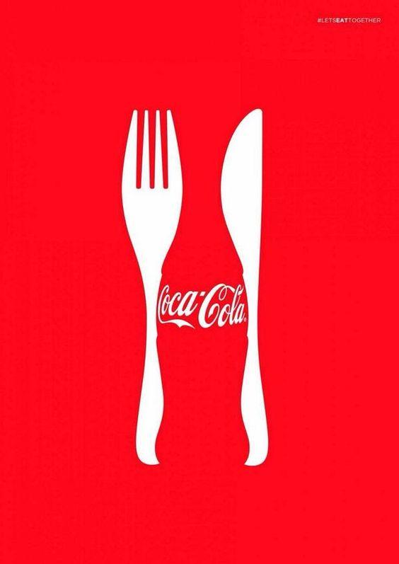 Arka fonun kırmızı rengiyle Coco-Cola şişesinin renkleri aynı oldukları için konumlandırılan çatal ve bıçak bakışımıza göre şekil veya zemin olur. Kırmızıyı arka plan olarak alırsak şişe zemin, çatal ve bıçak şekil olur. Çatal ve bıçağı zemin olarak alır isek bu sefer de Coco-Cola şişesi şekil görevi görmeye başlar. Bunun yanında gözümüz şişeyi tamamlamaya meyillidir. Basitlik ilkesine de uyan bu afiş Let’s Eat Together hashtagiyle çıkarılmış.
