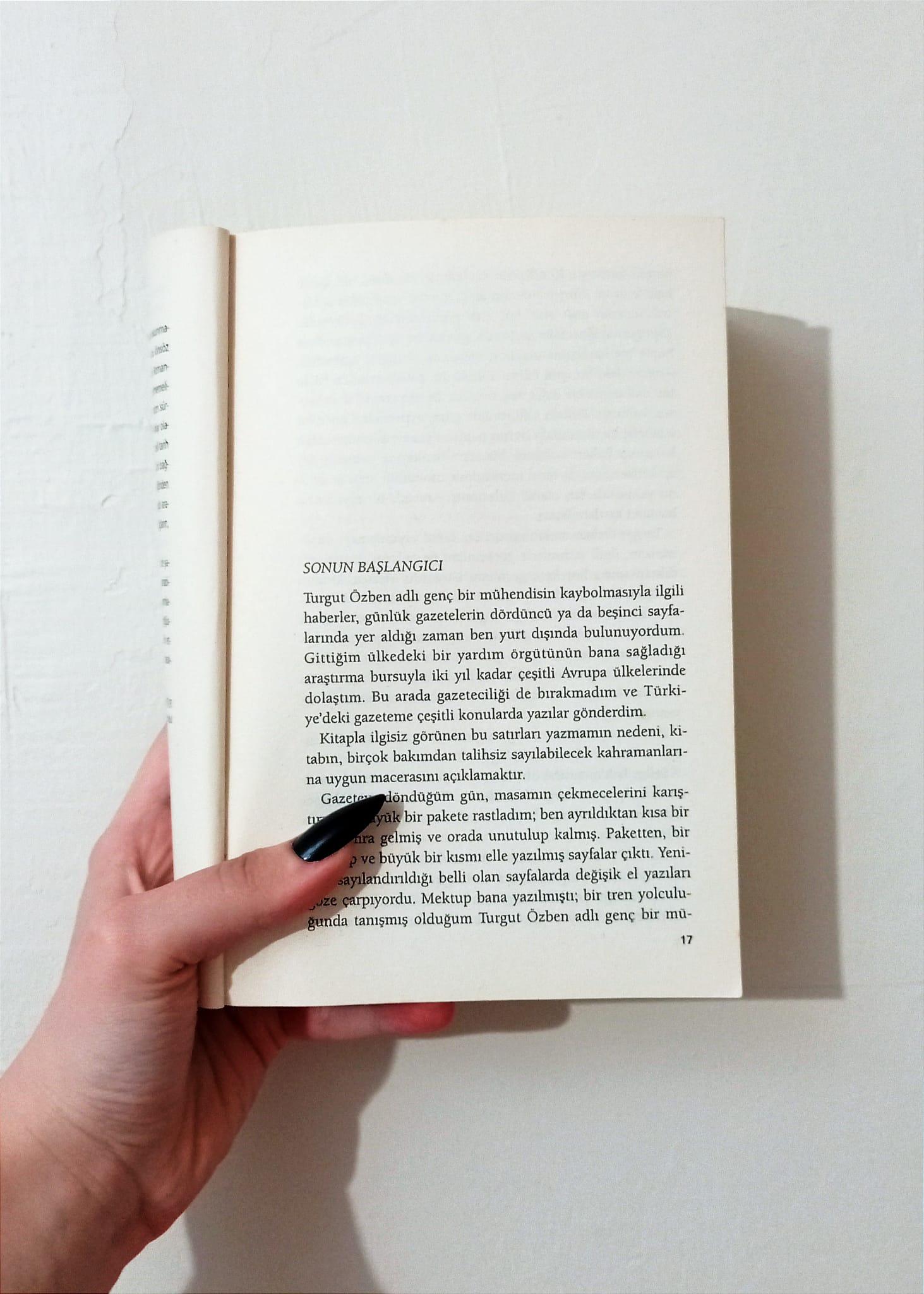 Roman, "Sonun Başlangıcı" bölümü ve bir mektupla başlıyor. Ana bağlantıyı oluşturan unsur, bu mektupta gizli olan arayışı içeriyor. İlk sayfalarda belirtilen üzere, mektup genç bir mühendis olan Turgut Özben tarafından yazılmıştır. Turgut, mektubunda kitabının yayımlanması için gazeteciden yardım istemiştir ve gazeteci bu isteği yerine getirmiştir. Tabii ki, bu süreç hızlı bir şekilde gerçekleşmez, aile görüşmeleri ve izinler gibi formaliteler yerine getirilir ve nihayetinde kitap yayımlanır.