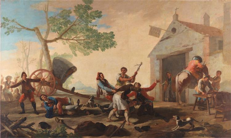 The other artist is Francisco Goya, who is very well known in the Romantic period and is Spanish. He is famous for his portraits and most of his artworks are exhibited in the museum of Prado. A very well-known work he has in that museum is"The Fight at the Venta Nueva". So**,** when l search what Venta Nueva means, l see that means"new sale" so he described a fight in a new sale. The reason why they fought is unknown, yet there is something that can be understood from the chaotic atmosphere the painting has.