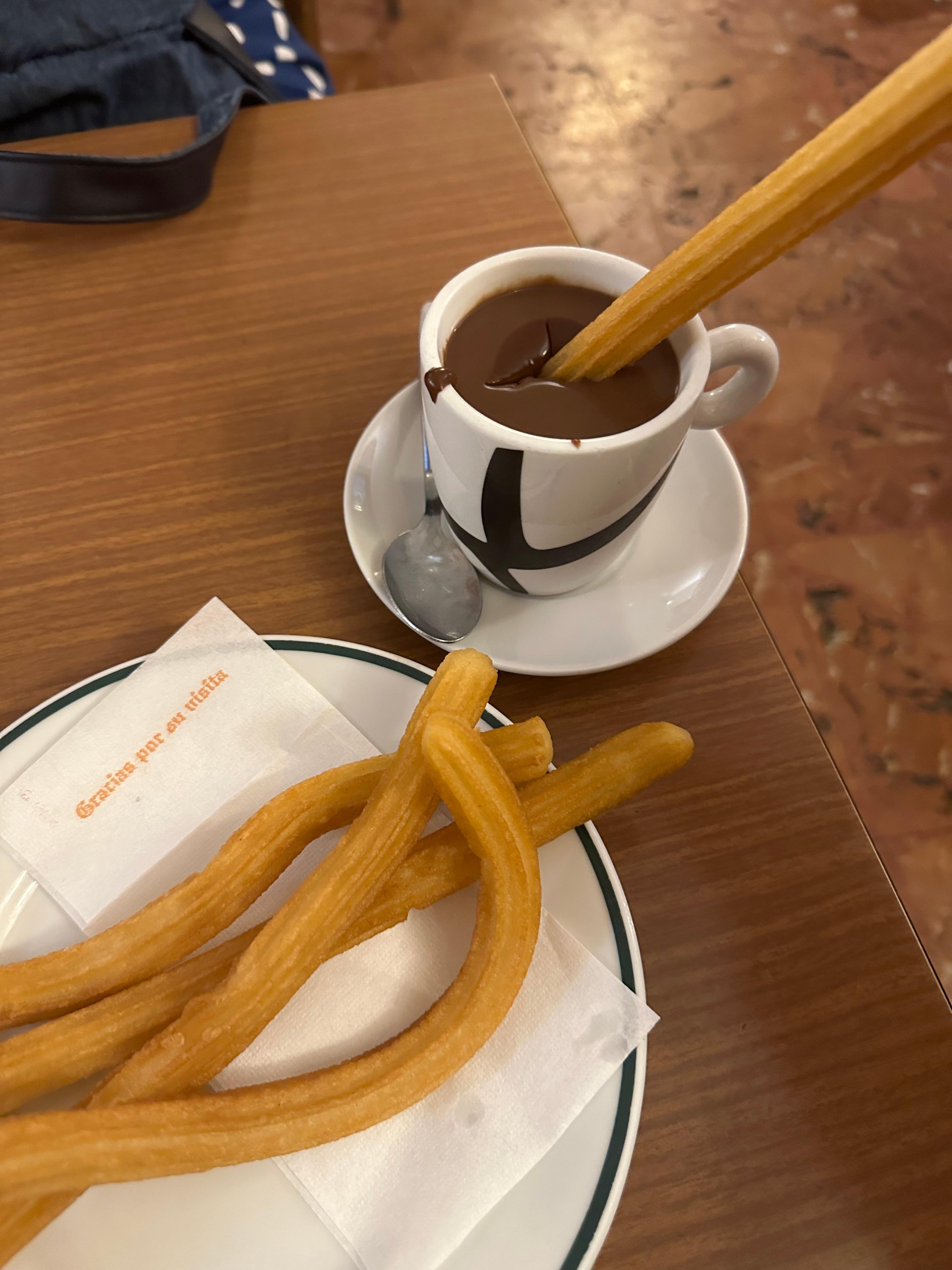 Biz de İspanya'nın Churros'u (Churro) meşhur diye, buranın en iyi Churros yapan yerine oturup bu lezzeti tadalım istedik.
