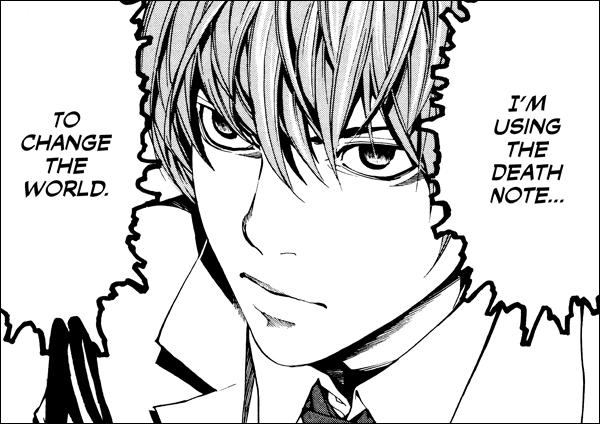2- They might have good goals, like the greater good of society, but use unheroic methods such as violence, killing, and manipulating. Light Yagami from Death Note is a good example. Light is using the death note to achieve a just society devoid of crimes, but he is killing people to achieve his goal, even the good ones that get in his way.